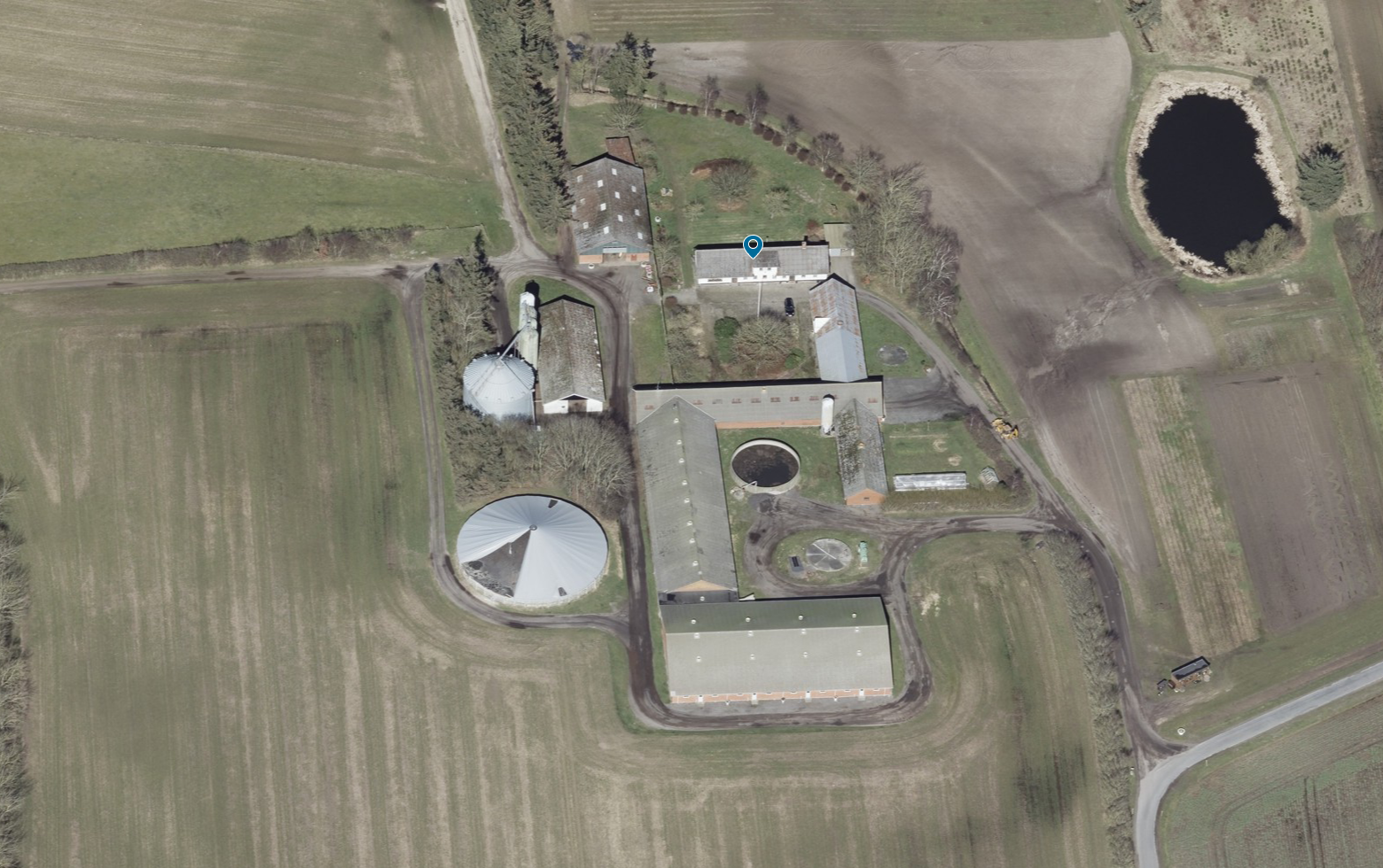 Korn- og foderhåndtering er med flere siloer, herunder en større amerikanersilo, samt et fuldt transportanlæg.