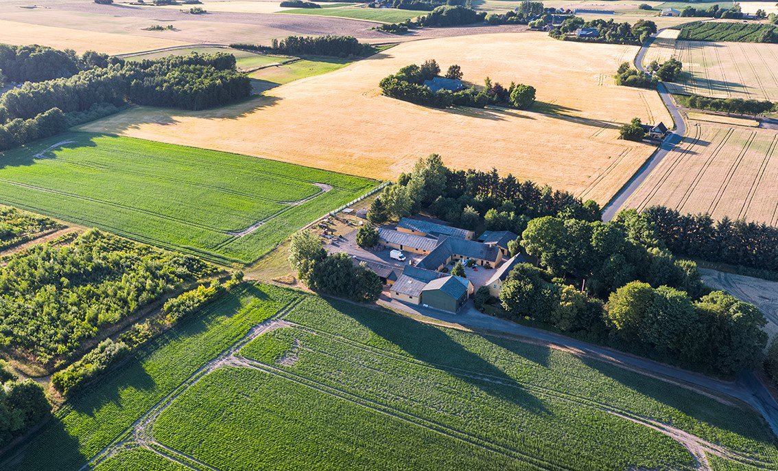 Med ca. 30 ha jord er der rig mulighed for mindre landbrug, selvforsyning, hestehold eller bortforpagtning. Der er desuden anlagt 2 ha blandet løvskov, som forbinder sig naturligt med ådalen vest for ejendommen. Ejendommen kan erhverves med mindre jordareal efter ønske.