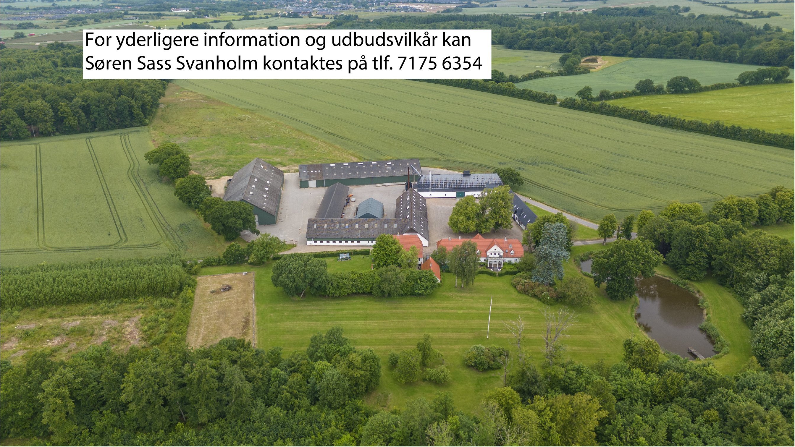 Højt beliggende med udsigt over egne marker og en herlig natur. Overordnet et nyere bygningssæt med moderne ejerbolig på 222 m2 opført i 2013 samt maskinhal/værksted på 586 m2. opført i 2020.